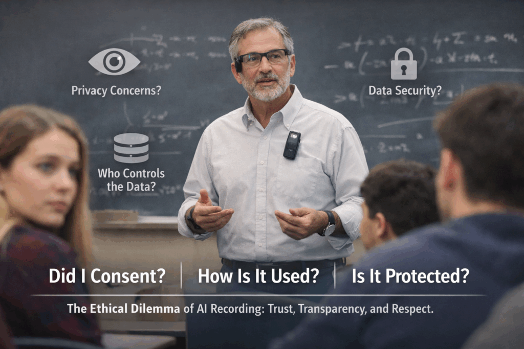 If a professor wears Meta AI Glasses or the Amazon Bee in class, it raises questions: Who agreed to the terms and conditions? Who manages the data? And who guarantees it won’t be misused?